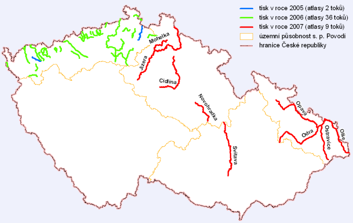 Atlas záplavových území 1:10 000 - harmonogram pracíAtlasy záplavových 1:10 000 jsou tištěny zvlášť pro jednotlivé vodní toky.